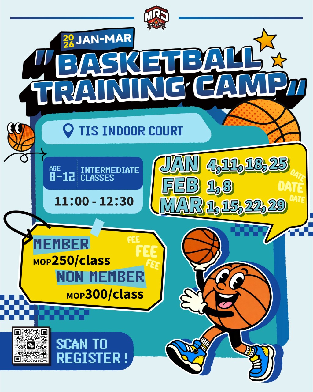 **MR.J Sports and Entertainment reserves all rights of holding make up class for adverse weather, COVID-19 or other irresistible factors. No make up classes or refund for any absence.